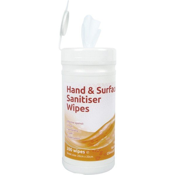Hand & Surface Sanitiser Wipes (Tub 200)